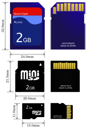 图 SD卡图示(由上而下分别为SD卡、mini SD卡和micro SD卡)[6]
